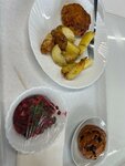 В самой столовой приятно и уютно! В туалете чистенько ,есть и бумага и полотенца для рук) Оказалась тут случайно,но достаточно сытно перекусила) За все что на фото вышло 323 рубля,что считаю неплохо так как на подносе: Картофель Айдахо,котлета с курицей рубленной и перцем болгарским, винегрет (только не соленый оказался),булочка с изюмом!