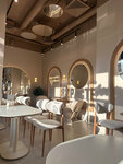 1) милый, приятный и воспитанный персонал, безумно вежливый 2) чисто и светло 3) в пространстве много зеркал, воздуха и классная не навязчивая музыка 4) вы видели это меню крутых завтраков? Вау! 5) десерт малинка - на вкус не как малина, а скорее как стереотипная ягодка. Нежный суфле крем держит форму, внутри прослойка из смеси ягод, свежо, не приторно (это очень важно) и актуально Вернемся сюда точно! Вокруг именно этой точки прекрасная урбанистика, лавочки и можно взять десерт и кофе, наслаждаться ими во время прогулки.