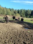 Отличное место для прогулки с детьми. Доступ к зубрам свободный, платная зона - это минифермы. Одна с птицами - гуси, куры, павлины. Вторая с животными - кролики, козы, овцы. При покупке билета выдают корм для тех и других. Животные очень общительные, выпрашивают морковку, дают себя погладить. Дети в восторге. Зубрам угощение привозить с собой. Целые морковки или яблоки. Подходят, с удовольствием лакомятся. Плюс на территории есть конюшня, кафе, детская площадка и веревочный парк. Правда небольшой и весьма "уставший", но детям нравится там полазить. Дальше есть беседки для пикника, но мы там не были. Батуты были сдуты. В целом, нам понравилось, провели прекрасный день на природе.