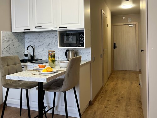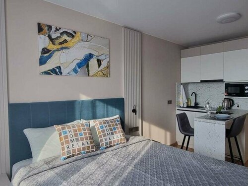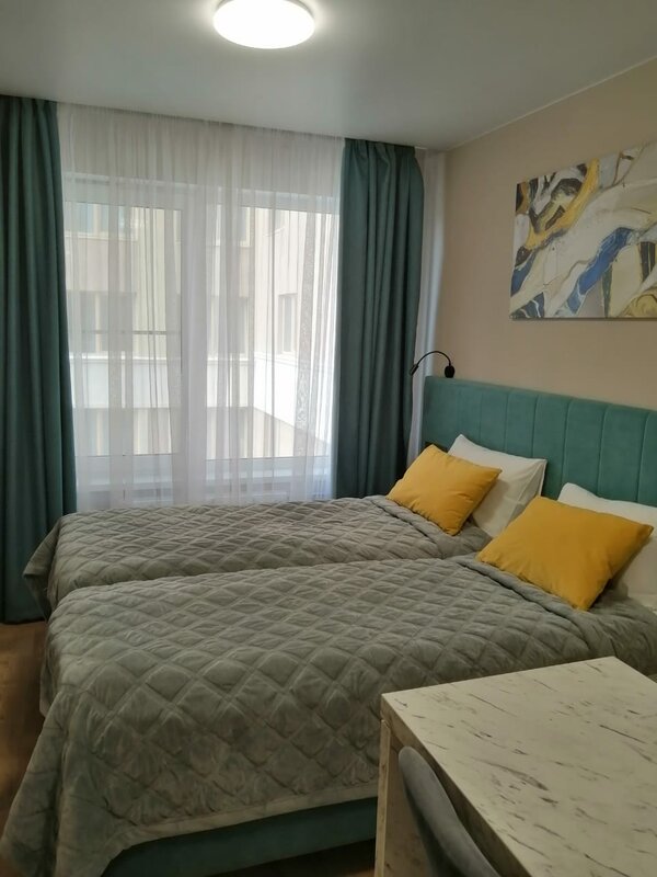 Новый номер. . Красивая и оргономичная планеровка. Удобная кровать. Тихо. Все необходимое для проживания от кострюль до ниток. Бесконтактное заселение . Бесплатная парковка