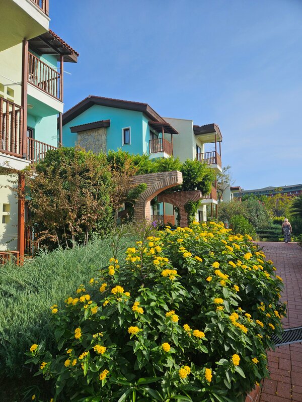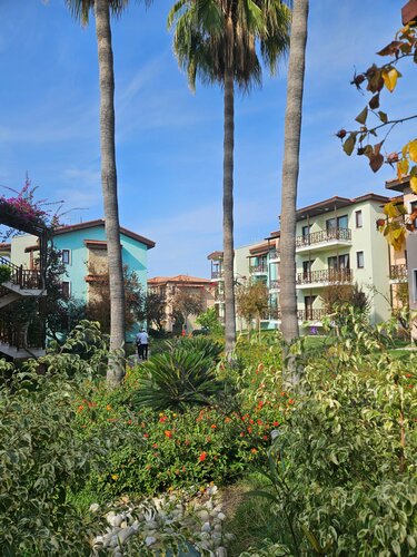 Ну и не плохо вроде бы, но и не 5 звезд. Повелась на рейтинг 4.9, и особо не изучая, купила сюда тур. Приехала и разочаровалась поначалу жёстко) Что такое настоящие 5 звезд мне знакомо, здесь максимум 3+ по всем параметрам. Но если ты приехала просто полежать на море, не придираясь, сойдёт. Если есть хоть малейшие планы на отель - это не сюда. Анимация никакая, вокруг в основном немецкие пенсионеры. И...простите, но мягко говоря, не самые интеллигентные русские. Вот все время удивлялась шуткам про Тагил, и впервые за многие годы отдыха за границей, встретила подобное именно здесь... Еда и напитки из того, что подешевле. Спа маленький, тесный, не очень комфортный. Номерной фонд 35-летней давности, но чистенький. Территория зелёная, ухоженная. Пляж галька мелкая. Лежаков много. То есть в целом норм, если 3+ звезды вас устраивает, и вы вообще без претензий. Просто я не понимаю, почему не ставить уже наконец реальные звёзды, чтобы не вводить людей в заблуждение.