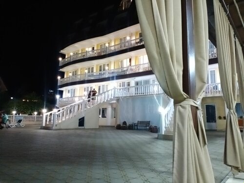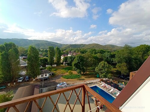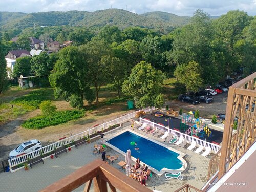 Замечательное место🪴🔥🪴🔥🪴🔥 мы остались довольны! Радует, что глубокой ночью отель на связи и не поленились разместить гостей, так на заметочку, половина отелей в Лермонтово предпочитают ночью вообще трубки не брать, так, что заблаговременно планируйте размещение. Плюс в карму отеля парковка у них для авто водворе всё в зоне видимости, особенно с 5этажа, всё как на ладони, плюс ещё на территории бассейн, по периметру шезлонги, столики с зонитками, есть крытая веранда со столиками и мягкими диванчиками, которая укрыла нас от дождя, когда после обеда море стало штормить, мы сильно не расстроились, вернулись в отель и с удовольствием продолжили отдых у бассеина, рядом большая детская площадка с мягким покрытием. Не смотря на то, что достался номер на самом верхнем этаже, лифта у них нет это всё компенсировалось шикарным панорамным видом с балкончика на горы и море, приятно было вечером наблюдать за горизонтом. Номер был стандартный односпальные кровати можно при желании соеденить, вся мебель деревянная резная с логотипом ЛЕТО, порадовал холодильник в номере, а вот чайника не хватало, приходилось спускаться вниз в кафе, жаль музыка в кафе только после 7вечера появилась, довольно таки зажигательный репертуарчик, можно потанцевать в хорошей компании, а вот днём её не хватало у бассеина, хотя может нам так повезло, мы были в будние дни))) хотелось бы и в следующем году увидеть доступные цены, скидочки для многодетных семей🤗однако не смотря на недочеты поставлю 5звезд, процветания вам... Л Е Т О мы ещё вернёмся)))