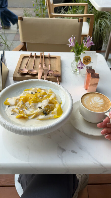 Прекрасное место, очень атмосферно, быстрая и красивая подача 😍😍 Кухня +5 все свежее, вкусное, яркие насыщенные вкусы. Заходила пообедать, забронировала сразу же стол на ужин!! Обслуживание 5+ официанты улыбчивые, внимательные и вежливые! Спасибо! Вернусь еще много много ра