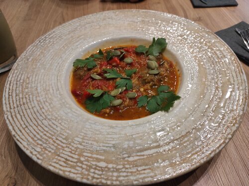 Первый и последний раз сделали здесь заказ (шашлыки и овощи-гриль с доставкой) Советуют написать в вотс ап, но не читают его, пока не позвонишь. Благо, телефон берут быстро Опоздали с доставкой Привезли уже тёплое, но не горячее Когда стали распаковывать, выяснилось, что овощи нам не положили. Снова пришлось звонить, обещали быстро довезти Но судя по времени доставки, их забыли не положить, а приготовить. Зачем нам эти овощи, когда мы уже поели чуть тёплый шашлык, непонятно? Думаю, следовало сказать, что ничего не готово, и вернуть деньги... Когда овощи привезли, они оказались ОЧЕНЬ горячими, то есть их правда только начали делать после нашей жалобы. Овощи крупные, даже не порезанные. В общем совсем разочаровали. Свиной шашлык достаточно жилистый,куриный понравился Три балла за вкусную выпечку, ребёнку понравилось Сервис ужасный! Никому не посоветую данное заведение!