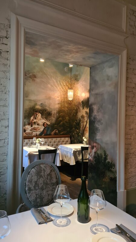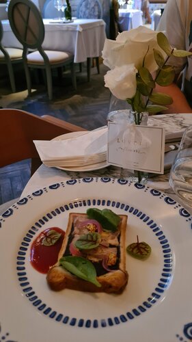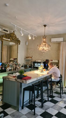 Мы с мужем любим хорошую еду. Шли именно за едой. Но всё, что мы взяли было никакое. Абсолютно. Улитки, луковый суп, судак, фуа-гра. Безвкусное. Понравилось кофе и шампанское. Всё. Посетителей мало, стоило задуматься, суббота в 20.00 было 2 стола занято. Интерьер хороший.
