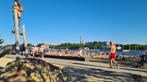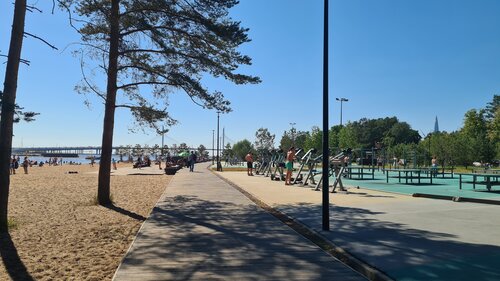 Место классное. Здорово провести время, побегать, покататься на великах, позагорать, играть в волейбол. Сам пляж достаточно чиииистый...но много осколков. С детьми аккуратнее. Таблички 'купаться запрещено'