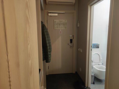 Ну ночевал я здесь первый раз и хочется поделиться. Во-первых не дешёвая гостиница, ну это ладно, за чистоту в номерах и чистое бельё можно заплатить 4300 не помню точную цифру, но вот за ужин 1000 рублей, сумма которая навязана, хотя могли бы прибавлять просто сумму на которую возьмёт постоялец. И за пластиковый завтрак 650 р. брать это уже перебор, взял отвратительные драники, просто картон, такой же на котором они лежали, сосиски которые даже наверное бездомный пёс есть не будет, ну и остался мне куроасан, ну или по нашему просто булка из слоёного теста и пакетированный чай. Но за чистоту в номере и сан узел спасибо, хотя вот матрац жёсткий спишь как на камне. Как то так.