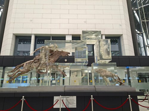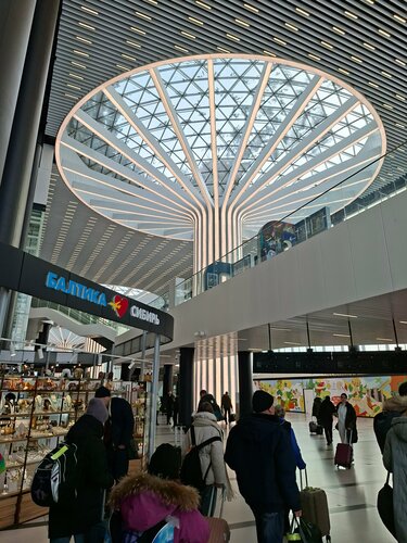 Аэропорт большой, современный, чистый. Для удобства передвижения оснащен лифтами, эскалаторами, можно воспользоваться багажными тележками. Удобная навигация. В аэропорту имеется всё необходимое: информационные табло, стойки регистрации, залы ожидания, комната матери и ребенка, сувенирные отделы, обширная фудзона. Цены на еду и напитки очень высоки. Обращают особое внимание трогательная скульптурная композиция "Авиаторы", "Покорение Сибири", картинная экспозиция, оригинальные выставочные витрины, в частности Дед Мороз и Снегурочка. На предполетных досмотрах большие очереди, но это и понятно - безопасность при большом количестве людей. В целом, впечатление очень благоприятное. Видно, что коллектив аэропорта делает, по возможности всё, чтобы наше пребывание было комфортным.