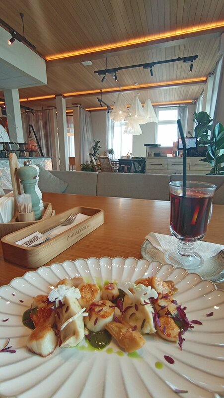 Очень понравился ресторан,стильное оформление интерьера и блюд.особенно понравилось сидеть за столом у окна и наблюдать штормовре море,наслаждаясь вкусной едой.