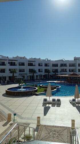 Отдыхали в этом отеле с 27.01-5.02.2025. Первое впечатление было не очень,приехали ночью,в номере было прохладно, кондиционер на тепло не работал.пришлось греться в горячем душе,в котором так плохо закрывалась дверка,что пол мгновенно стал мокрый,как потом оказалось, ещё протекал унитаз(несколько раз просили сделать,но так и сделали,сказали не смывать))))Кровати оказались очень удобными,белье чистое,хорошего качества, полотенца тоже хорошие.в номере не работал торшер,из освещения маленький светильник и всё.очень плохо закрывалось окно,постоянно вылетал замок,приходилось делать самим.питание в отеле хорошее,выбор не большой,но все очень вкусно.нам понравилось, особенно ужины.персонал приветливый,шутят,улыбаются .но отдельная история с барменами,наливают пиво в пластиковые стаканчики даже в баре на ресепшене по 100 грамм,если несколько раз подходишь и просишь налить ещё,становятся очень раздражительными,говорят подожди 10 минут или пиво закончилось.хотя платно всегда пожалуйста.очень не приятно было такое отношение,даже не хотелось у них что то просить,такое ощущение, что они разливают свое.так что мы и многие ребята просто покупали алкоголь в маркете.на пляж возил бесплатный трансфер,изрядно уставший автобус с очень милым всегда улыбающимся водителем.но на пляже этом не было ни рыбок,ни кораллов.в отеле можно было купить билет в отель Риф бич с очень красивым коралловым рифом,вот там самая красота,такое изобилие рыбок!стоит билет 2$.У нашего отеля хорошее месторасположение,до старого города можно прогуляться пешком минут 35-40.или поймать такси за 1$.убираются хорошо,если оставить на чай,то сделают фигурки из полотенец.насчет питьевой воды тоже бывало,что заканчивалась .дают в маленьких бутылках.мы не выбрасывали и ходили набирали в куллере в ресторане.чтобы прогреть номер,открывали окно и шторы чтобы солнце высушило вещи,сушили их на стуле и кресле,сушилок в номере нет.только в ванной в душевой висит верёвочка,но просушить там вещи не реально.кстати,интернет есть не только на ресепшене,но и в номерах,узнали об этом не сразу)))).вообщем отдых нам понравился,мы старались не замечать плохое,а акцентировать внимание на хорошем.ведь по другому в Египте никак.