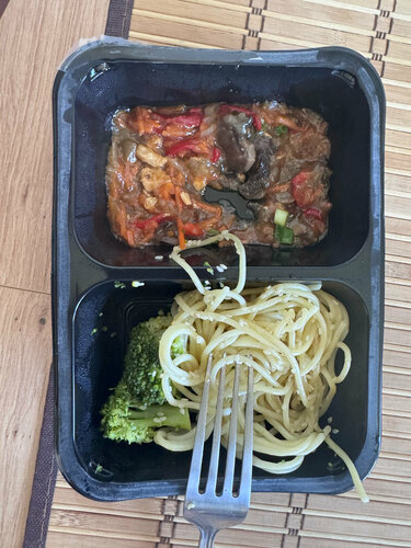 Очень маленькие порции и низкое содержание мяса. В некоторых блюдах оно вообще отсутствует, хотя заявлено 😂! Не советую. Низкая стоимость наборов связана с бюджетными продуктами, используемыми для приготовления. Прикладываю фото индейки 😂 один крошечный кусок на всю порцию.