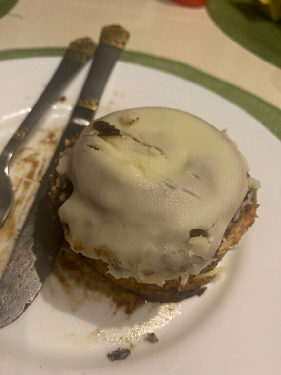 Это уже откровенный обман!!! Синнабон-это булочка с корицей и сливочно-сырным кремом, а я сегодня домой принесла булку с сахарной глазурью!!! Даже намека я сливочный сыр здесь нет Не поленюсь и принесу вам завтра их обратно!!!