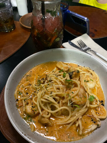 Шикарное заведение, начиная от интерьера и заканчивая вкусом и качеством блюд❤️ Свежайшие морепродукты, достойные порции , отменный вкус и все это по приемлемой цене (счет в конце вас точно порадует🙈) Были не один раз и уже есть свои фавориты⭐️ Салат с ростбифом, креветки васаби, шикарная паста с креветками и конечно же роллы, это прям топ❤️ Ах, да и всем советую фирменный ТомЯм Ресторан обязателен к посещению ❤️