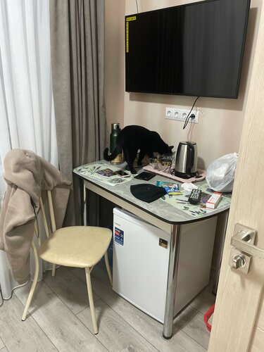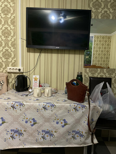 2500 сутки номер - 5 баллов Чистота номера -1 балл - чистое только постельное белье, одеяла не заправлены и очень старые и грязные в шкафу, подушки все старющие, одни комки Диван засален до омерзения Но чайник рабочий и две кружки -это плюс в карму. Номер прокурен;( Дальше по дороге на 10 км еще 5 гостиниц, будем пробовать другие.