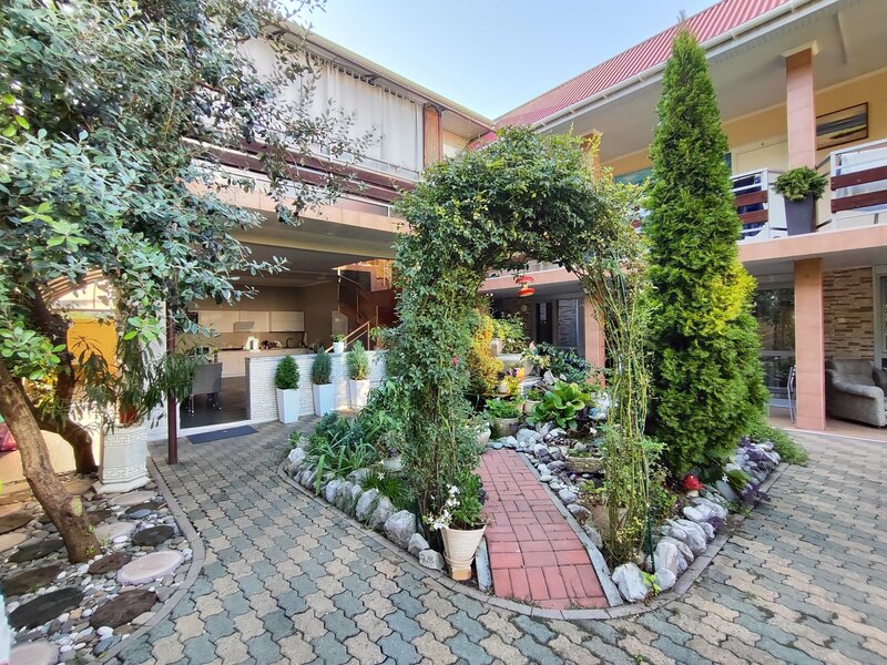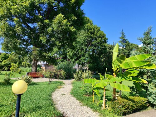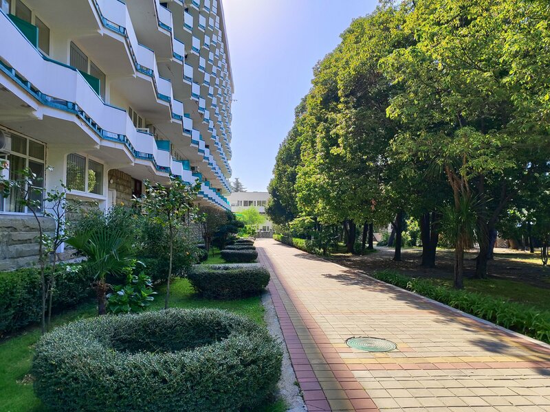 Живём тут. Прекрасное место. Красивый дворик. Вход с территории санатория "Знание". Гостям доступна вся территория санатория включая бассейн и пляж.