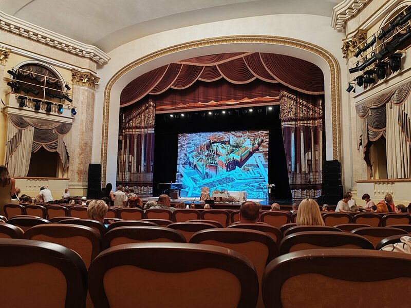 Очень красивый театр. В холле висят картины. В зале сцену хорошо видно с любого ряда. Единственный недостаток плохо слышно артистов. Со звуком проблемы. Приходится напрягать слух. Со временем привыкаешь, но всё-такидискомфорт.