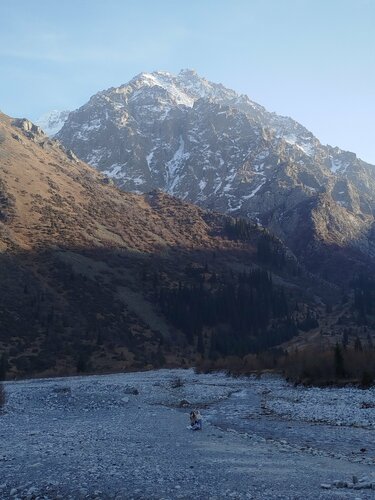В принципе, мне горы очень нравятся. В Кыргызстане они очень красивые. Особенно когда нет необходимости карабкаться вверх. До самого апрка можно добраться специальныи городскими автобусами, далее на специальных автобусах в парк с двумя остановками. Одна у ресторана вторая у строящейся канатки и пешеходной дороги до каменной реки. Много белок, свежий воздух, прекрасная возможность прогуляться осматривая величественные седые вершины.