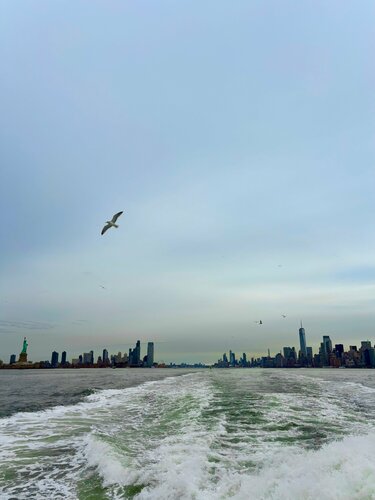Любимая женщина с мороженым)) Ею можно любоваться бесконечно. Честно, на сам остров можно не плыть, лучше скататься на пароме, ее очень хорошо видно. Открывается потрясающий вид на Манхеттен