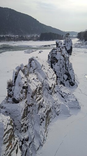 Зубы дракона это одно из красивейших мест на реке Катунь. Острые торчащие из воды скалы. Любоваться, на них интересно с моста, так как хорошо видно мощные потоки воды. А зимой зубы на фоне льда становятся выше!