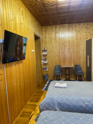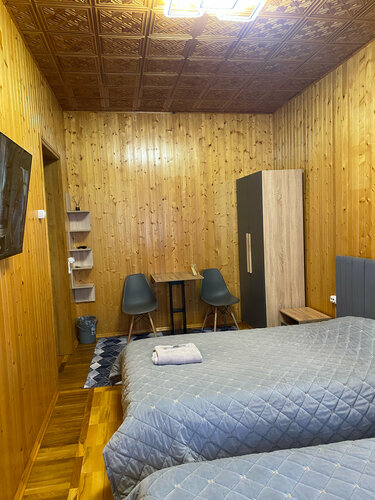Отличная гостиница. Очень уютно, чисто, комфортно. В комнате есть все необходимое, удобная кровать, матрас, чистое постельное белье. Есть шкаф, прикованные тумбочки, телевизор, стол, стулья. Выдали полотенце и набор( зубная щетка и маленькая зубная паста). Комната просторная. Есть зона - столовая, там все необходимое для приготовления еды. Гостеприимные хозяева. Цена шикарная. Мне было очень комфортно ночевать в гостинице.
