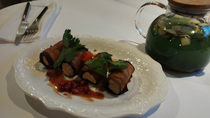 После посещения данного ресторана осталось небольшое чувство неудовлетворённости. Хотя все было отлично. В санузлах отличная косметика, все чисто и красиво. По качеству обслуживая так же все прекрасно. Официанты отлично разбираются в блюдах. Могут внести корректировки в блюда, убрать продукты которые Вы не едите. Из того что заказывали, если не вдаваться в детали то все отлично. Но если сравнивать с другим местами, то есть вопросы. Наш заказ был следующим: Паштет и печени цыпленка. Тут все отлично Прекрасный паштет и что особенно пондравилось , тост поджаренный, с хрустящей корочкой. Крем суп с гребешками. Сливочная составляющая прекрасная. Отличное сливочное послевкусие. А вот гребешки оставляют желать лучшего. И тут вопрос, либо сами гребешки такие, либо после длительной термообработки они потеряли свой вкус. Так как вкуса гребешков я так и не почувствовал. Салат с баклажанами и страчетоллой. Так же есть не большой не дочет. Не достаточно обжаренные баклажаны. Мачете с кабачками. Мясо прекрасно приготовлено. Кабачки тоже(приготовили альденто, прекрасно похрустывают))) Так же хочу отметить прекрасную посуду и чайный сервис в котором подают чай