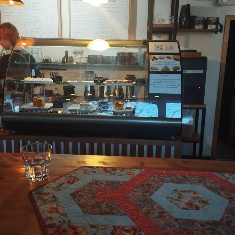 Зашел в данное заведение с целью дегустации кофейных напитков. Так используемые зерна поставщика мне не знакомы. Мне была предложенны зерна арабики темной обжарки. Страна Мексика. Эспрессо на выходе получил с устойчивыми крема и приятным ароматом. С плотным телом. Кислотность выше среднего. С устойчивым ягодным послевкусием. Я бы отметил очень кислое рябиновое послевкусие. После остывания есть не большая горчинка. Спасибо баристу за прекрасный напиток. До этого был в этом заведении полгода назад. И как то не проникся, тогда качеством. Но на текущее время думаю данная кофейня заслуживает внимание!