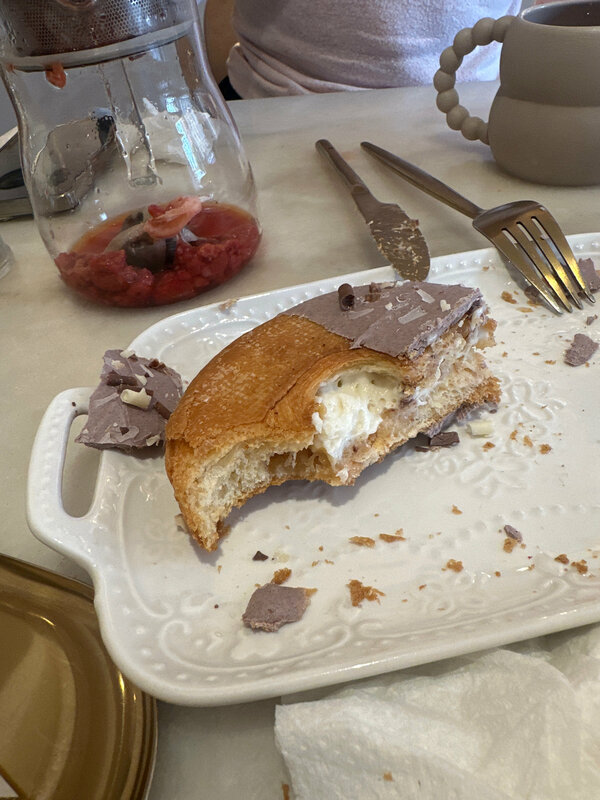 Несвежее, дорого и невкусно. Сухой круглый круассан. Эклеры несвежие, безвкусные. Девушка с черными волосами, когда накладывала, прям волосами касалась всех эклеров. Не советую для посещения!!