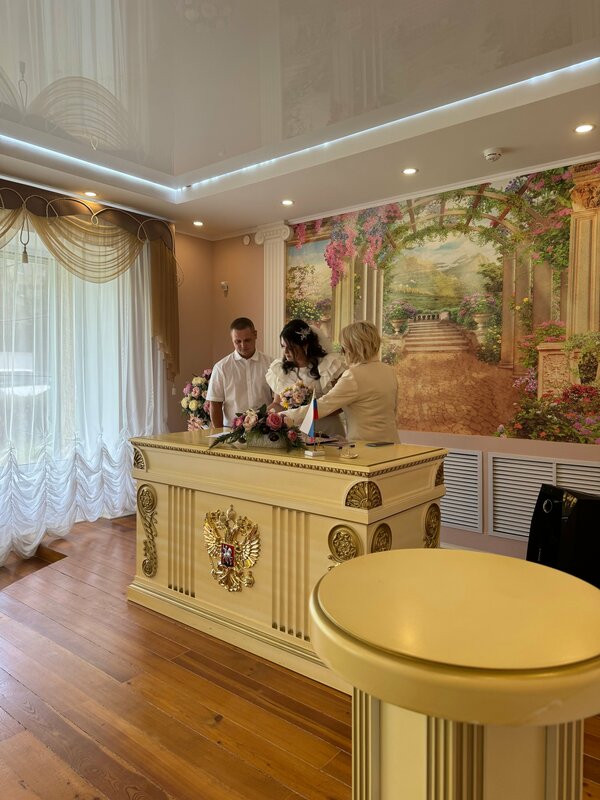 Хорошие работник, шикарная церемония 😇 на прошибло на слезу, нам было очень приятно в этом загсе