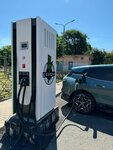 Работает, заряжает бесплатно. Удалось запустить не с первого раза. Знак о месте для электрички стоит только слева, соответвенно, до второй машины может не хватить длины кабеля.
