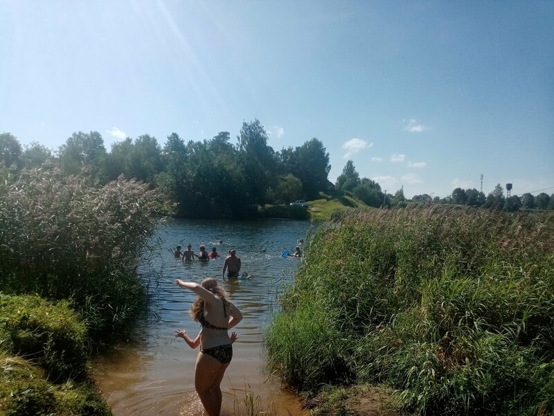 Нашли это место случайно. Много людей. Место хватило всем и на берегу и в воде. Хорошее дно(песочек). Спуск к воде в нескольких местах. К сожалению много камыша. Вода очень чистая, на удивление. Стоят большие пакеты для мусора. Порадовало, что люди всё же следят за чистотой. Понравилось всей семье. Остались довольны и дети и бабушка.