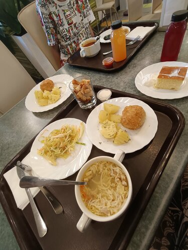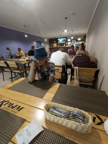 Чек - выше среднего. Полноценный обед (а-ля, первое, второе и компот/десерт) на двоих обойдётся, в среднем, 1900 руб. Достоинства: +Местоположение на набережной; +В целом, всё вкусно; +Симпатичный интерьер; +Чистенько и аккуратно вокруг; +Персонал адекватный, расторопный, вежливый; +Оплата картой и наличными; +Есть VC; Недостатки: - Регулярно отсутствуют салфетки, ложки и вилки на полках при входе, где берутся подносы; - Часто отсутствуют маленькие тарелки для еды, и приходится ждать пока принесут вымытую их партию. - За самыми обычными и ходовыми овощными салатиками по сезону (типа капуста с огурцом, капуста с морковью) нужно "охотиться" - их съедают быстро и первыми, а готовить ещё и выставлять не спешат. Бывает, что такие востребованые овощные салаты в течение дня и не появляются вовсе. Остальные салаты с зеленью, овощами (типа пекинка с кукурузой, зеленью и т.п.) как топором порубаны, часто заветренные и невкусные. При этом салаты, которые значительно меньше пользуются спросом у людей, стоЯт целый день огромными бадьями (морская капуста, морковь по-корейски, буряк с чесноком, крабовый, оливье, сельдь под шубой и т.д.) и не раскупаются. А, ведь, многие из них заправлены майонезом и быстро портятся на жаре (а в зале тут жарко); - Картофель кусочками часто бывает недоваренный, сыроватый, недоготовленный; - Самые простые, вкусные, востребованые десерты (тортики "Наполеон", "Медовик") предлагаются по 3-5 кусочков, и люди мгновенно их разбирают, а больше эти тортики в течение дня не появляются. Зато десерты, а-ля со вкусом "дубайского шоколада", которые никому не нужны и стоЯт там сутками, зачем-то предлагаются в большом количестве; - Из рыбы в меню бывает лишь 2-3 блюда; - Мясные, рыбные блюда, гарниры холодные - их нужно греть самостоятельно в зале. Микроволновок всего лишь 2 на весь зал, и к ним часто очередь, приходится ждать. - Рядом с половиной блюд отсутствуют таблички с наименованиями! А это очень важно, чтобы они были! Например, у меня пищевая аллергия на свинину, и если я съем котлету со свининой в составе, это может быть опасным для моей жизни и здоровья! Поэтому, из-за отсутствия табличек, я вынуждена каждый раз искать девушек-работниц и спрашивать у них, что это за котлета или блюдо, что очень раздражает; - Кондиционеры во внутреннем зале в летнюю жару работают только для вида, не холодят абсолютно! В зале жарко, душно. То, что кондиционеры работают, могут ощутить только те посетители, которые ухитрятся сесть за два столика, расположенные на расстоянии в 1,5 м от кондиционеров, прям под потоком воздуха, идущим из них. Остальные посетители, сидящие за другими столиками, вынуждены кушать и потеть. - Частенько половина столов во внутреннем зале занята людьми, а вторая половина - заставлена подносами с грязной посудой. Несколько дней в разгар сезона наблюдали, как в зале убирает один-единственный парень (он умница, расторопный, к нему претензий никаких), но при достаточно большом потоке людей, он чисто физически один с нужной скоростью не успевает всё убирать со столов. Чтобы не заставлять людей ждать, необходимо 2-3 человека для уборки со столов в зале! - В столовую разрешён вход людям с пляжа с вещами и в мокрых купальниках. Часто посетители идут прямо с пляжа в эту столовую, и у многих из них большие пляжные сумки и рюкзаки, которыми они мешают другим посетителям столовой