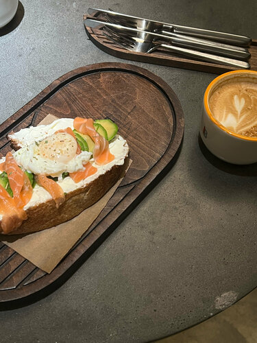 Очень рада, что в Артеме открылось такое фэнси заведение. Редко приезжаю и наконец-то есть повод заглядывать пораньше. Еда вкусная, брала красную рыбу на тартине и попросила добавить яйцо пашот с авокадо. Получилось нереально вкусно, жду эту позицию полноценно в меню. Кофе тоже супер, также предложили безалкогольное и алкогольное шампанское в подарок (бокальчик). Не очень поняла суть акции, но нас было двое, а входит только один бокал. Предложили разлить в два по половине. Спасибо! Хочу отдельно отметить дружелюбный персонал. Ответили на все вопросы, помогли с выбором блюд. Атмосфера тоже супер, можно сделать фото и просто приятно провести время. Ничего вокруг не напрягает и не отвлекает. Желаю заведению развития и улучшений!