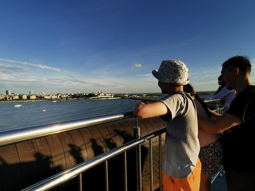 Центр семьи "Казан", символ полной чаши, семейных ценностей стоит на насыпном острове на реке Казанке. Есть смотровая площадка на город с великолепными видами. Подниматься пешком примерно на 9 этаж. Вблизи "чаши" стоят 4 мифических существа - пары зилантов и мифических барсов, женского и мужского пола. Женские особи с тремя детенышами, как символично. Стоимость для взрослого 200руб, ребенка 100руб, до 7 лет бесплатно. Перед вьездом на парковку знак "кирпич", но он действует только ночью, мы первый раз проехали въезд 😊