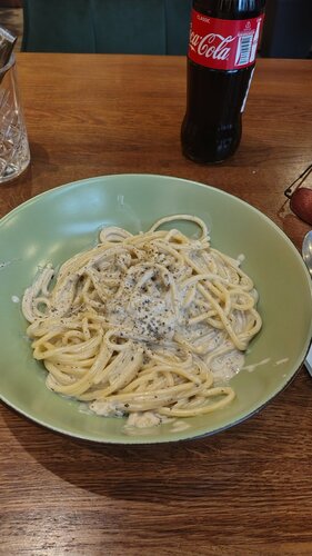 На всякий случай, вдруг кто не знает - Positano это маленький городок в Италии, который построен на громадной каменной круче побережья, жутко неудобный для проживания и люди, которые в нём живут это *** оптимисты, только такие могли устроить своё жильё в таком неудобье и назвать его с использованием вариации термина "позитивизм" Заведение с таким названием оправдывает нейминг сразу в нескольких аспектах. Мало кто работает в режиме 24*7, Позитано это делает. Не проверял (славабогу), но знаю куда можно направить стопы в 3 часа ночи)) Интерьер со вторым светом (особливо в новогодней версии) по домашнему мил и тёпл;) Кухня прекрасна и молниеносна, вителло тоннато принесли раньше напитков. Такое вообще бывает? ..но в чём-то чувствуется лёгкий подвох. Долго размышлял в чём именно? Видимо в размере порций? Или в посуде? Все тарелки по формату маленькие, кажется что еды недодали)) обычно во всех московских заведениях пользуют тарелки громадного размера, кажется что еды принесли много. Яблочный пай отдалённо напоминает пиццу?) по подходу к технологии изготовления ..да, а почему бы и нет?)) свеженько Звуковое оформление из композиций во многом из первой половины ХХ века создаёт неповторимую атмосферу почти античности. Официант у меня был великолепный. Активный и позитивный, отдельное спасибо. Провёл мини лекцию по приготовлению пасты в сырной голове (на видео кусок этого действа). Удивило, что совсем не напряжно. Обычно мне такое не нравится, но у парня получается очень органично. Профессионал. Вы же знаете, что пасту в оригинале нужно есть проглатывая без разжёвывания?)) да, здесь хочется сделать именно так. И это бывает не часто. Я бы сделал, если бы пасты в моей тарелке было в два раза больше) На самом деле, пожалуй, персонал в Позитано один из самых дружелюбных, встречавшихся мне за всю мою богатую клиентскую историю. Был бы отраслевой приз на эту тему, я отдал бы свой голос здесь. Программа лояльности отсутствует. Это явный минус. Но с 12:00 до 16:00 действует 20%. Во многом это существенная компенсация. ...и, да, бонусная рюмка лимончелло догнала меня на выходе) типично по-итальянски. Браво. Молодцы. Светильники в туалете прелестны. Вывод - приду ещё не раз. И вам советую)