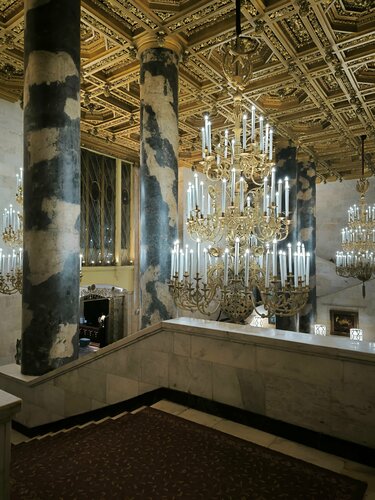 В фойе приятно посидеть. Тут не дешево,, но официанты не торопят с выбором и дают насладиться чудесной музыкой. Несмотря на помпезность возникает чувство уюта и расслабления в масках креслах и на диванчике