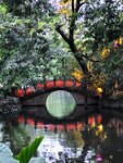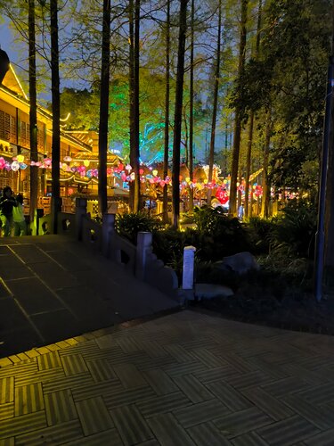 Мне очень понравилось. Как все китайские парки, он не только деревья, но ещё и вода, мостики, уютные кафешки, даже сцена с традиционным представлением. Нам повезло, мы застали праздничные украшения в этом чудесном месте