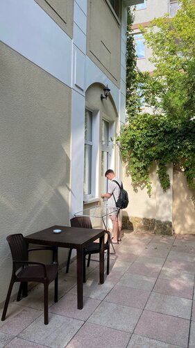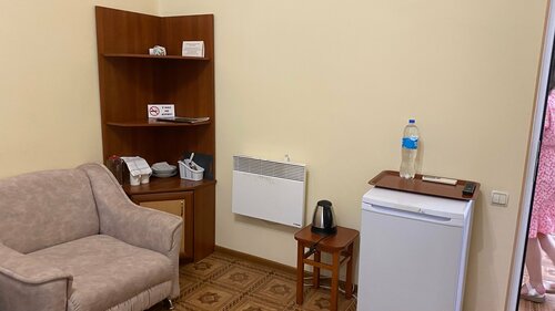 Хорошая гостиница, в номере чисто, кондиционер, телевизор, есть бутылочка 1,5 л, всё необходимое - полотенца, посуда, шампунь, гель, мыло. На территории зелено, в номер свой личный вход, со столиком и сушилкой для белья. Мы жили в одноэтажном номере, есть так же двухуровневые для больших семей. Рядом магазин Еда&Вода (аналог КрасногоБелого), до набережной и соответственно до моря метров 100, все работники доброжелательные. Вернемся ещё ❤️
