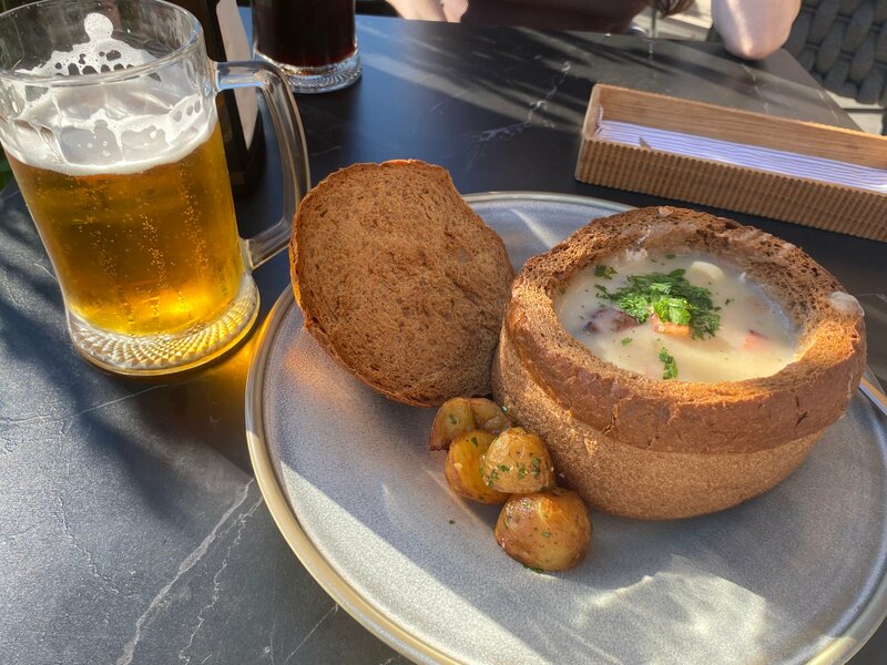 Вкусное заведение, приятная веранда. Находится в красивой локации с видом на набережную. Всё очень вкусно, брали журек, пиццу с ростбифом и по пиву. Вышло чуть больше двух тысяч.