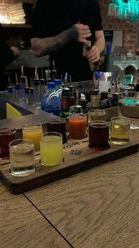 очень хорошее место!! место расположено в центре москвы, красивые виды, близость красной площади. сам вход красиво украшен, приветливый персонал, есть гардероб, где можно оставить вещи. в заведении играет хорошая музыка, не попса, вайб точно имеется!! интерьер заведения был красиво украшен к хелоуину. очень хорошие вкусные настойки, как и коктейли. но!! очень узкие столики, когда поставили доску для шашек, места под пустые рюмки почти не осталось. но я жду скорейшего повода вернуться сюда!!