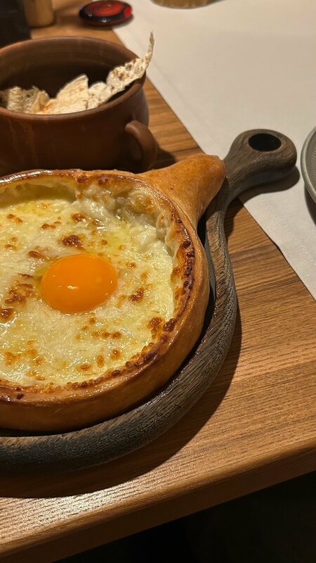 очень уютное место! пришли в пятницу вечером, столик не бронировали - нам предложили несколько вариантов на выбор. очень вежливый персонал!! посоветовали, порекомендовали новиночки из сезонного меню. но мы шли по базе - хачапури и хинкали. клянусь, здесь я попробовала самый вкусный хачапури по-аджарски!! в туалете все тоже миленько - есть крем для рук, мыло, красивые зеркала для фото!!) есть второй этаж, но мы туда не дошли единственное, что смутило - когда искали заведение, где бы пообедать, на вывеске фиолетовый хинкали. он, правда милый, забавный, танцующий, но с концепцией грузинской кухни фиолетовый цвет не совсем вяжется. а так все вкусно!