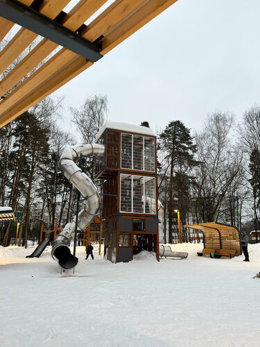 Стильный, со вкусом обустроенный парк. Отличные детские площадки: не дешевый убогий пластик, а современные конструкции для активных игр. В кафе - вкусный кофе с печеньками :) Много светильников, комфортно гулять с детьми вечером. Чистый туалет, достаточно урн. Дети колбасятся на площадке третий час, в таком восторге, что не соблазняются уйти даже ради пиццы :)