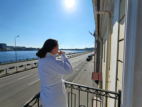 То самое чувство когда ожидания оправдали реальность. Номер с выходом на балкон на Неву ( тихое и уютное место, хотя центр города рядом ). Чай, кофе, косметические принадлежности - есть и обновляются 👍 Матрас именно той жёсткости которая полезна для здоровья 👌☝️