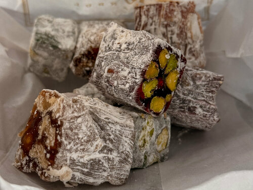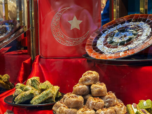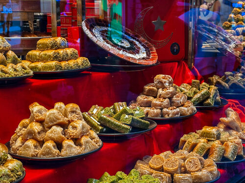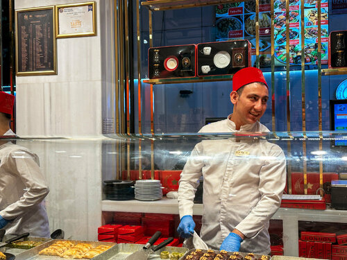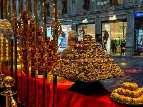 Если бы у Стамбула было сладкое сердце — оно бы наверняка было из пахлавы Hafiz Mustafa. Кондитерская существует с 1864 года — цифра, внушающая уважение. И уже у входа становится понятно, почему она пережила столько эпох. Витрина сверкает золотом сиропа и орехов: пирамидки пахлавы, фисташковый лукум, розовые дольки рахат-лукума, блестящие от сахара, — всё аккуратно разложено, будто ювелирные изделия. Нас встретили приветливые турки в фесках, предложили попробовать разные виды пахлавы и с гордостью рассказали, в чём секрет каждой. Мы не смогли выбрать — взяли несколько штук наугад и не прогадали: сладость идеально сбалансирована, а орехи хрустят так, будто их только что очистили. Больше всего понравилась пахлава в виде "сендвича" и наш любимый рахат-лукум. Да, цены здесь не маленькие, но честно — после Hafiz Mustafa все остальные сладости кажутся просто репликой. Мы заказали чай, устроились за столиком и наблюдали, как по улице Истикляль звенит колокольчиком красный ретро-трамвайчик. Внизу спешит жизнь, а у нас — своя маленькая пауза со вкусом турецких сладостей и чая.