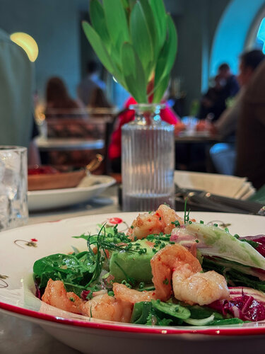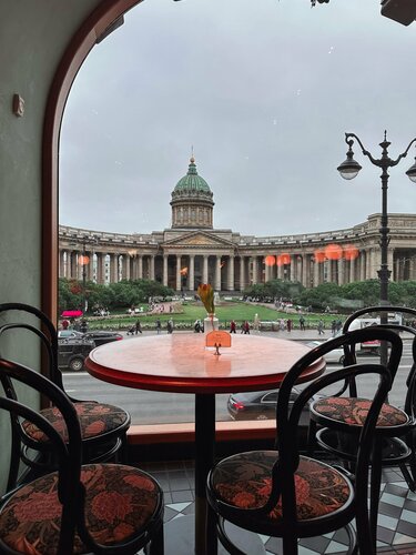 Наверное, это самый фотогеничный и эстетичный ресторан во всем Петербурге. Он расположен на втором этаже и плавно перетекает из книжного магазина в пространство, где запах кофе смешивается с видом на Казанский собор. Свет льётся через огромные панорамные окна, придавая этому месту французскую изящность. В меню — русская и французская кухня. Это то самое место, где можно остановиться с чашкой латте, смотреть на Невский и чувствовать, что ты в центре города, но одновременно в своем тихом уголке. Цены - чуть выше среднего. Наш чек вышел на 2 630 руб. Брали: - салат с креветками, авокадо и грейпфрутом (950 руб.) - утка-конфи с брусничным соусом и салатом из фенхеля (1190 руб.) - чай липа-мята (490 руб.) Бронировать столик стоит заранее, так как по факту вас вряд ли смогут принять. Место популярное. А столики у окна просто так не сядешь. Вся бронь расписана на 3-4 недели вперед. Совет: бронировать столик стоит заранее, так как в противном случае вам, скорее всего, не удастся найти свободное место. Место пользуется большой популярностью. Столики у окна обычно забронированы на 3–4 недели вперед.