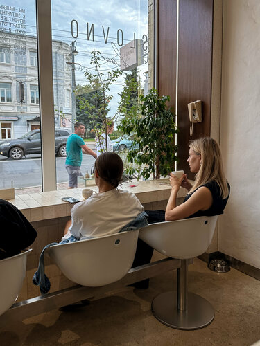 Неожиданное и приятное открытие летней поездки во Владимир. Кофейня «Slovno в мае» - это уютное, стильное пространство с минималистичным интерьером и большим вниманием к деталям. В городе всего две кофейни. Первая прямо в Торговых рядах (в которой мы и были), вторая — в здании музея «Старая аптека». Меню лаконичное, как и сама кофейня: только кофе и десерты собственного производства. Но с какой душой здесь всё сделано! Каждое пирожное — будто арт-объект. Все выглядит эстетично и аппетитно. Первое, что нас привлекло — это светлый интерьер в духе белокаменного зодчества Владимира и Суздаля. Пространство будто наполнено воздухом. Есть и неожиданные дополнения: библиотека воспоминаний, где за каждой дверцей — своя история, и бар-гардеробная с книгами о Владимире. Мы, как настоящие амбассадоры кофе в путешествиях, не могли пройти мимо. Взяли по стаканчику латте. Вкус нежный, насыщенный, с лёгкой терпкостью и приятными вкусовыми нотами, которые затронут сердце даже неискушенного любителя кофе. Мы редко ставим заведению честную десятку. Но здесь — без колебаний. Что ещё важно — все материалы стаканчика биоразлагаемые. Мелочь, а приятно. Видно, что ребята не просто варят вкусный кофе, но ещё и делают это с заботой об окружающем мире. Средний чек на двоих: 800 руб.