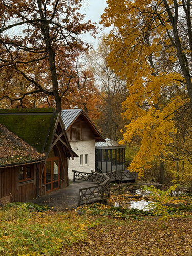 Каждую осень мы отмечаем день рождения Лизы не в Москве, а в отеле на природе. В этом году выбрали Welna eco spa resort в Тарусе. Раньше здесь был пионерлагерь, а теперь — ухоженные дорожки, стильные домики и музей пионерии рядом с ресепшеном. Несмотря на полную загрузку, на территории спокойно: только шелест листьев и редкие голоса гостей. Наш номер в 10 корпусе оказался просторным и очень тёплым.