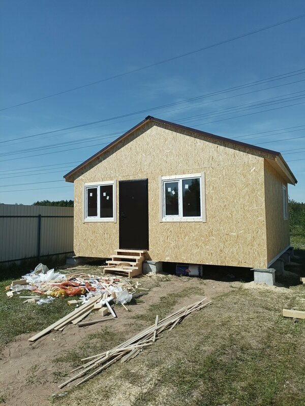Нашла чисто случайно эту компанию, посмотрела, и решила написать. Перезвонил менеджер Артём, общались в ватсап. Был на связи всегда. Очень быстро договорились, за пару дней. Очень подкупила изначально цена, так как дешевле, чем в других компаниях. Мы строили на своем фундамента (блоках), а так стоимость дома и стоимость фундамента расчитывается по отдельности. Деньги платили в два этапа: 1-й когда привезли материал, 2-й по окончанию работ. Бригада Ромы, построили быстро, говорили построят за 3-4 дня, пл факту получилось 2.5 дня. Работали три мужчины. Работают быстро, у них нет бесконечных перекуров, пару раз присели перекусить за день и всё. Домик построили хорошо. Нареканий особо не было. Материалов у нас не осталось, обрезки только, поэтому Фирма не забирала, а а так сказали, что могут забрать. Мусор не убирали, так как я сама попросила их оставить как есть, и мы сами рассортируем что-куда. Однозначно фирму рекомендую, но имейте ввиду, что на вагонке, которой обшивают есть "дырочки" От сучков. Окна двухкамерные, одна створка глухая, вторая поворотно-откидная.