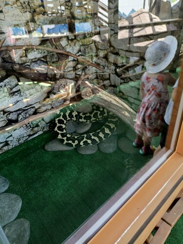 Дорого, были 20.08.24 г стоимость 1000 рублей один билет старше 3-х лет. Кто там? Крокодилы, змеи несколько видов, ящерицы тоже несколько штук. Но цена завышена. Восторга вообще нет. Крокодилов достаточно, но они спят в основном, возможно во время кормления они более активны и интереснее. Да, там еще есть черепаха, с которой фотографируют местные фотографы, цена на магнитик маленький один 500 рублей. Была типо скидка за все 2500. Сезон, и они все хотят заработать на приезжих, но считаю, что цены должна быть более доступные, хотя бы детям дешевле билет.