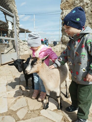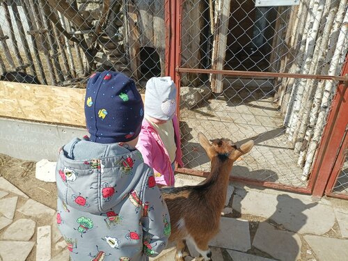 Хорошее место, детям понравилось. Мне немного не хватило разнообразия животных. Козочки, милые, ручные. Кролики в клетках сидят, жаль что их нельзя погладить. Так же ходят барашки, есть гуси, куры, енот и еще кто-то... Есть отдельно пони, чтобы на нем покататься нужно дополнительно заплатить (300₽) Еду не покупала, поэтому ничего не могу про нее написать.