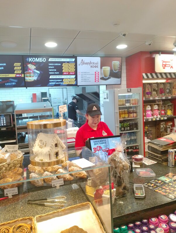 Хорошая азс, но в кафе подали сырые котлеты в бургерах. Сотрутники кафе странно веселые, орут на странном языкен.